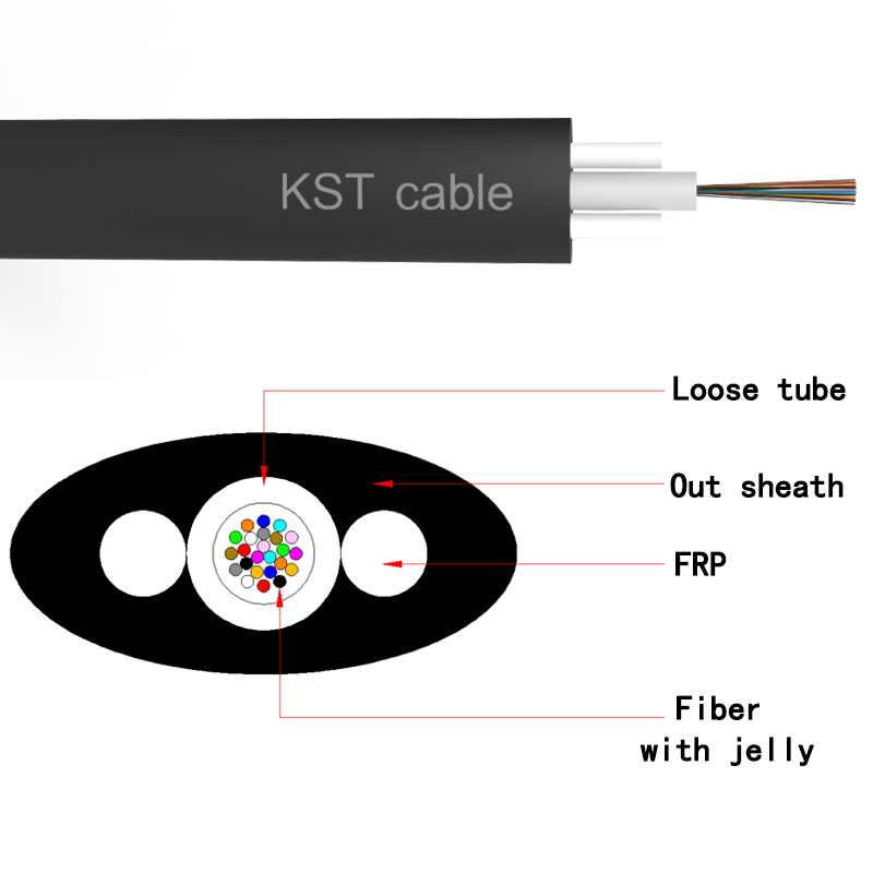 Two parallel reinforcing elements enable the optical cable to have excellent compressive resistance, protecting the optical fibers.